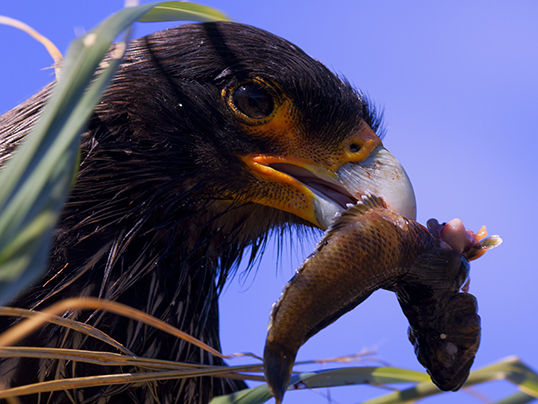 Caracaras are very opportunistic birds, and they show an incredible variation of diet. Some of this variation is specific of each territorial pair. For example, at Sea Lion Island there are some pairs that are good at fishing.