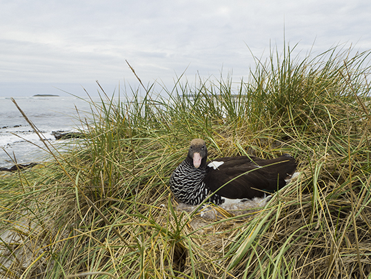 Female kelp goose on the nest