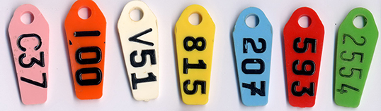 Plastic tag, actual size (Jumbo Rototags -Dalton Supplies Ltd.)