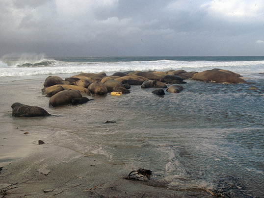 Moulting elephant seals can be packed one on top of the other: in this situation reading tags (moulters are not dye marked) can be a challenging task